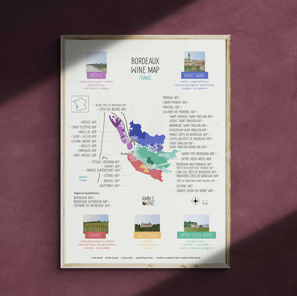 Display the wine map of Bordeaux with this large format poster!