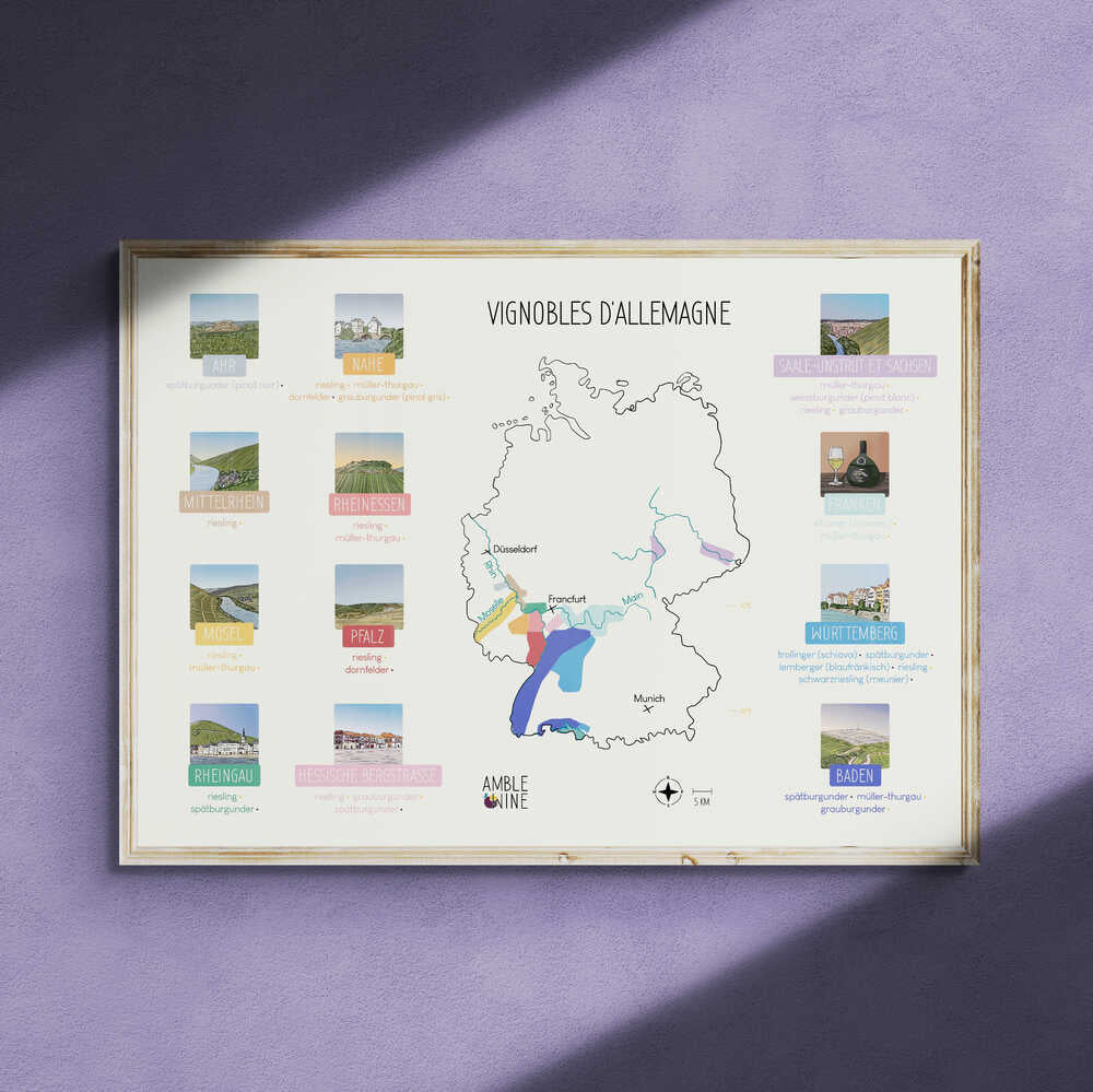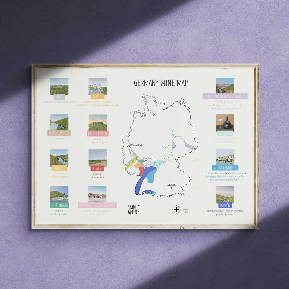 Display the wine map of Germany with this large format poster!