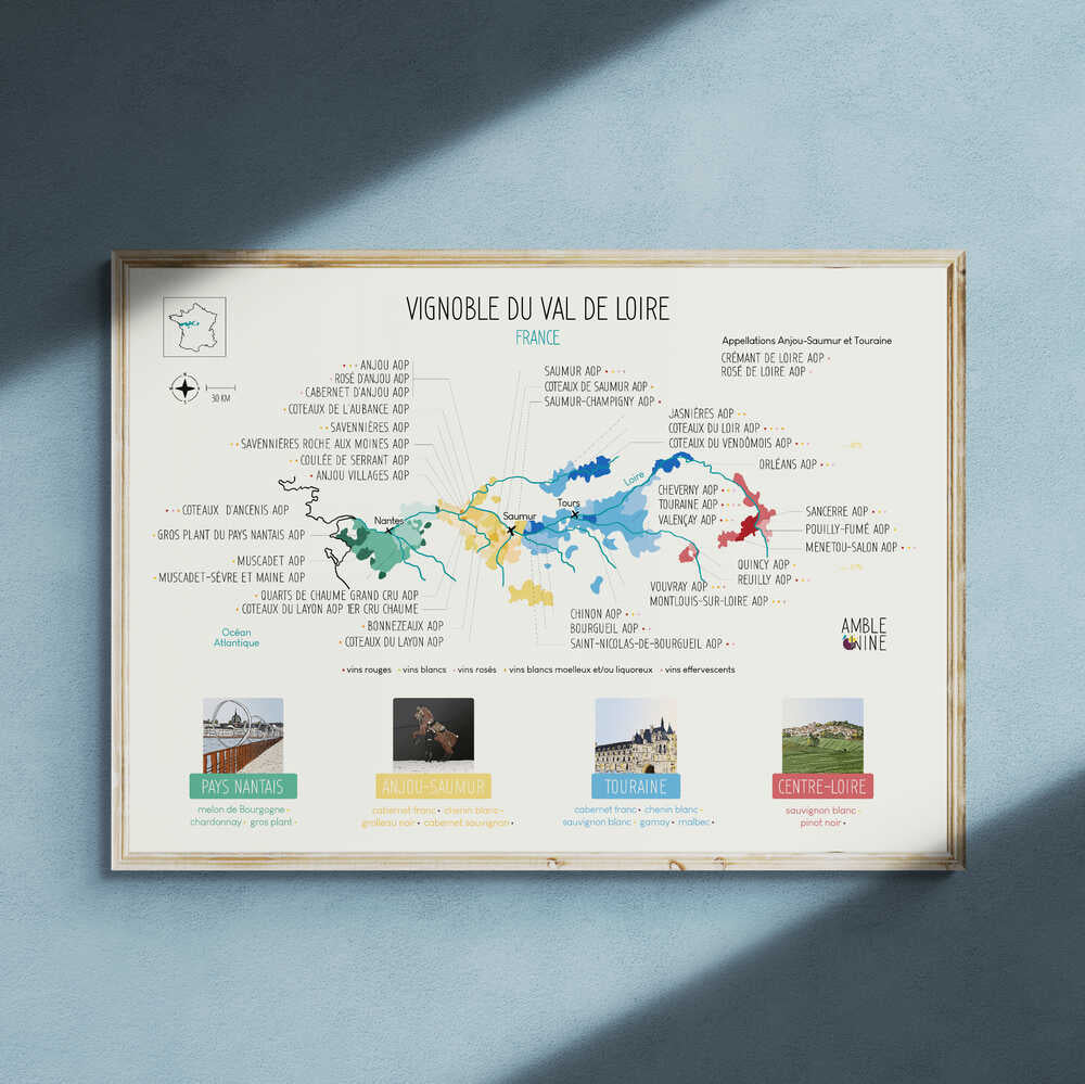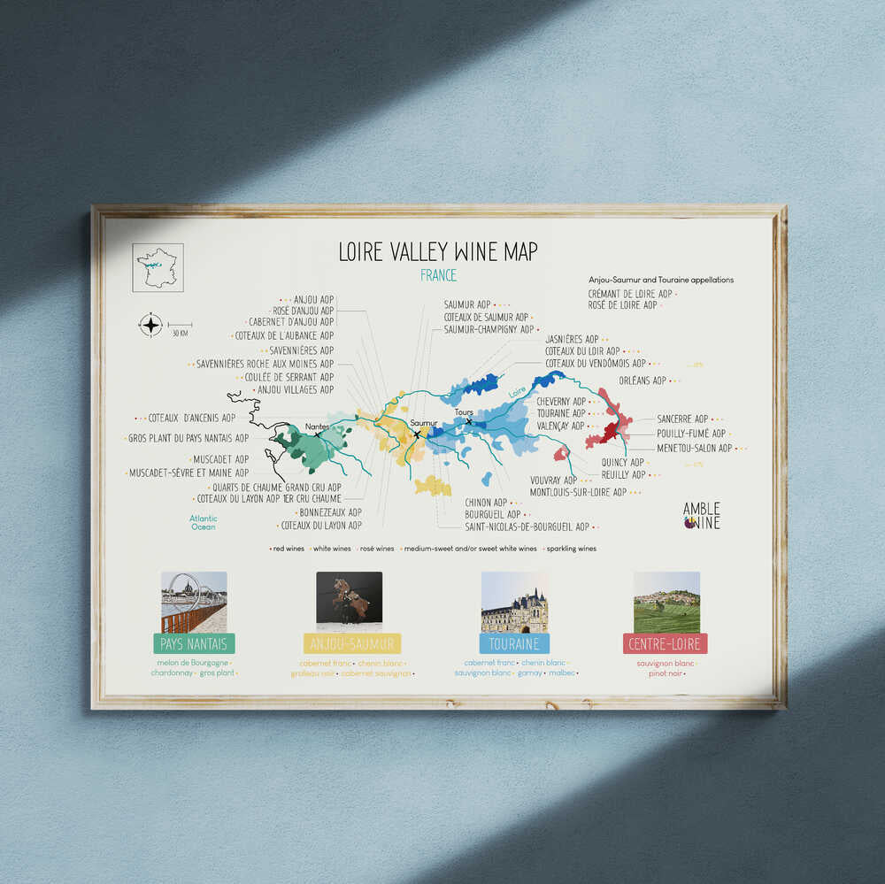 Display the wine map of the Loire Valley with this large format poster!