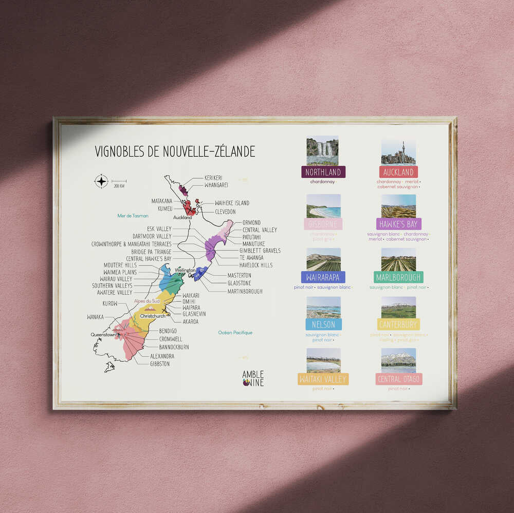 Display the wine map of New Zealand with this large format poster!
