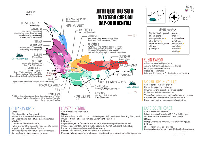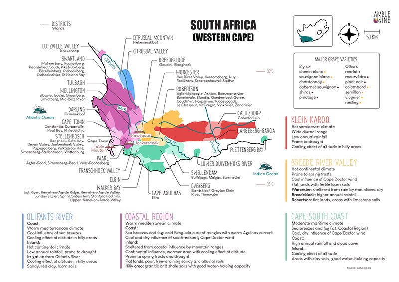 Discover the wine map of South Africa with this high quality digital file!