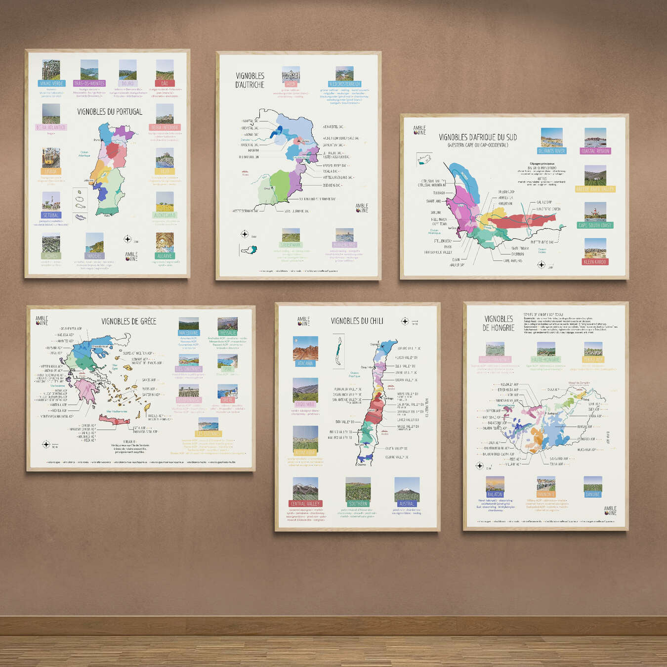 Affiches en grand format d'Argentine, Australie, Autriche, Chili, Allemagne, France, Grèce, Italie, Hongrie, Nouvelle-Zélande, Portugal, Afrique du Sud, Espagne et Californie North Coast.