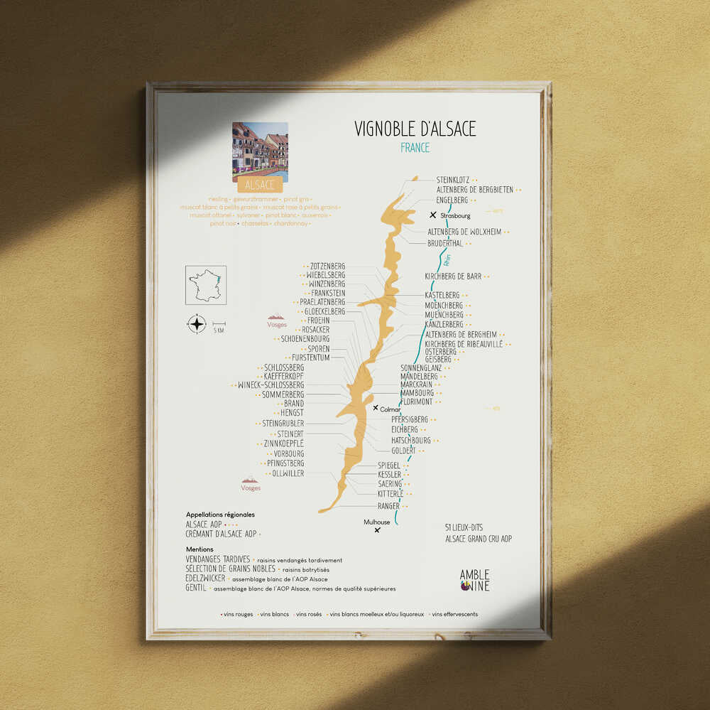 Display the wine map of Alsace with this large format poster!